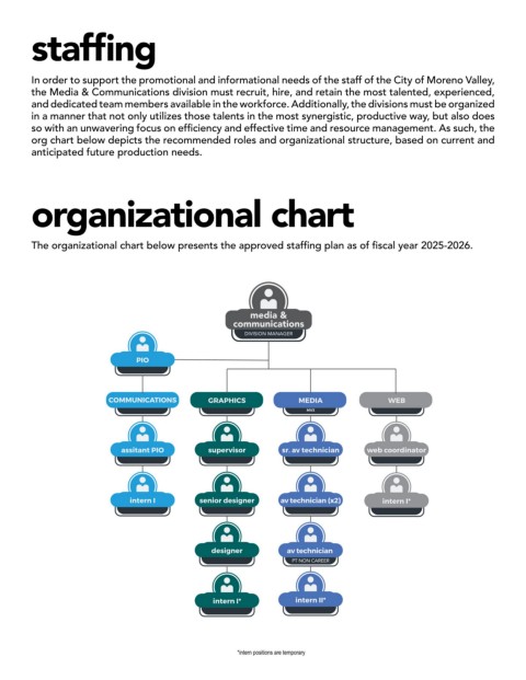 The organizational chart below presents the approved staffing plan as of fiscal year 2025-2026.
